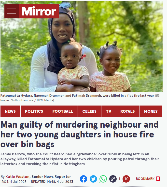 الإرهابي المجرم "جيمي بارو " يقتل حرقاً عائلة مسلمة ! بعد أن فعل فعلته اتصل بالشرطة ليعرفإلى أي مدى وصلت التحقيقات ! يقتل القتيل و يمشي في جنازته ! صورة الإرهابي بعد أن وقع في أيدي العدالة : ![]() صورة الضحايا : ![]() الخبر كما أوردته صحيفة الــ Mirror |