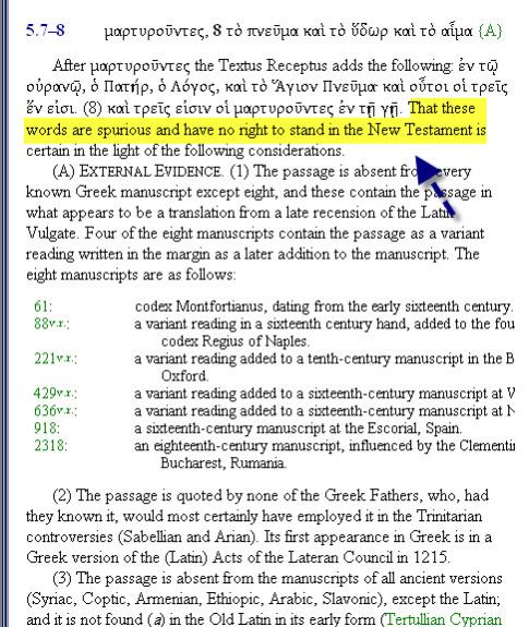 لا حول ولا قوة الا بالله ... اتفضل .... يقول بروس متزجر ... (4) That these words are spurious and have no right to stand in the New Testament ان هذة الأضافة مزيفة ... وليس لها اى وجة حق فى وجودها فى العهد الجديد .... ويقول بروس متزجر وبارت ايرمان ... يعترف العلماء ان هذة الكلمات ليست ضمن العهد اليونانى ابقى أقرأ يا صديقى المشاركات ....!! https://www.kalemasawaa.com/vb/74999-post14.html https://www.kalemasawaa.com/vb/74133-post10.html