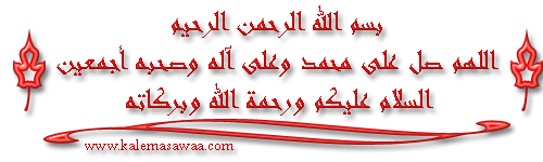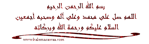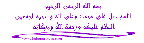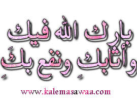 بسم الله الرحمن الرحيم إن شاء الرحمن نستمر نسال الله تعالى البركة في الوقت شكراً لمرورك و دعائك الطيب ![]() http://files.mothhelah.com/img/XuR64618.gif ![]() http://files.mothhelah.com/img/yNl64618.gif ![]() http://files.mothhelah.com/img/xzS64618.gif المزيد من مواضيعي