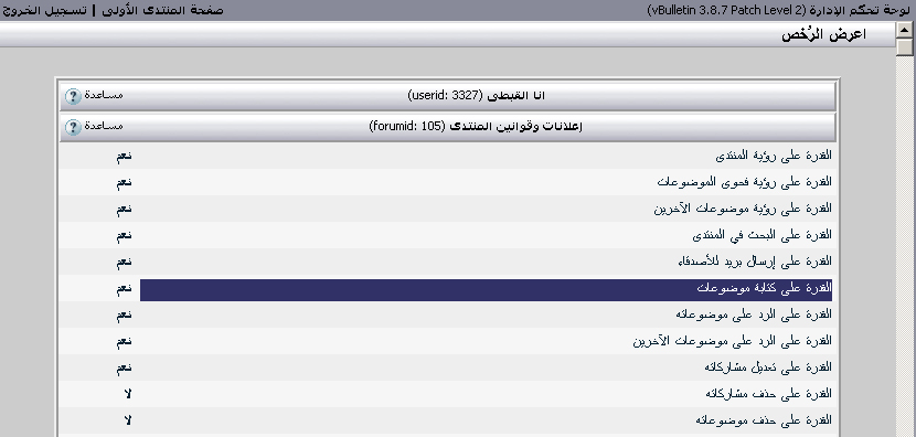 محظور في المواضيع يعنى أيه ؟ دى صورة من لوحة الإدارة للصلاحيات اللى عندك