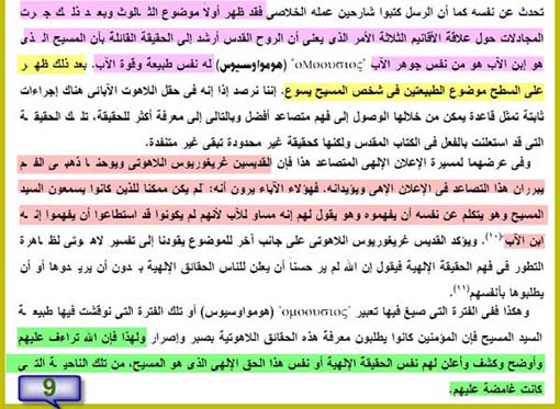 و دقق في هذه الصورة تجد أن التضليل و الاستغفال كان على مراحل ! ظهر أولا موضوع الثالوث ثم مرحلة المجادلات حول الأقانيم الثلاثة ثم يتهرب من الكلام باللغة العربية لينقلك إلى مصطلح ساقط باليونانية و يكلمك عن الهومواسيوس لمجرد أن يعطيك ايحاء بأن الموضوع مستعصي على الفهم ! ثم يظهر على السطح موضوع الطبيعتين ثم يكلمك عن " التصاعد في الإعلان الإلهي " ... كل هذا عيسى منه براء ! ثم ينحط إلى عته فريد من نوعه فيقول : النصارى لن يفهموا لو قال يسوع لهم أنه مساو للآب لماذ ؟؟؟؟؟ .. ما هو المبرر الذي جعلهم لم يفهموا ؟؟؟ لأنهم لم يفهموا أنه الإبن ! يا سلام على المبرر "المقنع " !! .. أرأيت مستوى الاستخفاف بالعقول .. و كيف يبرر تبرير شديد التفاهة ؟ و الشاهد : أن النصراني العادي يحتاج أن يعرف حقيقة أن الآباء أفسدوا دين المسيح و اخترعوا أوهام و اعترفوا بذلك بوضوح لا لبس فيه .. الآباء يقولون بوضوح أن عيسى لم يأت بأي شيء عن عقيدة الثالوث و الأقانيم و ألوهية الروح القدس و الطقوس إلى آخر تلك التخريفات ... انظر كيف تجد الحقيقة شديدة الوضوح في القرآن في سورة المائدة : {115} وَإِذْ قَالَ اللّهُ يَا عِيسَى ابْنَ مَرْيَمَ أَأَنتَ قُلتَ لِلنَّاسِ اتَّخِذُونِي وَأُمِّيَ إِلَـهَيْنِ مِن دُونِ اللّهِ قَالَ سُبْحَانَكَ مَا يَكُونُ لِي أَنْ أَقُولَ مَا لَيْسَ لِي بِحَقٍّ إِن كُنتُ قُلْتُهُ فَقَدْ عَلِمْتَهُ تَعْلَمُ مَا فِي نَفْسِي وَلاَ أَعْلَمُ مَا فِي نَفْسِكَ إِنَّكَ أَنتَ عَلاَّمُ الْغُيُوبِ{116} مَا قُلْتُ لَهُمْ إِلاَّ مَا أَمَرْتَنِي بِهِ أَنِ اعْبُدُواْ اللّهَ رَبِّي وَرَبَّكُمْ وَكُنتُ عَلَيْهِمْ شَهِيداً مَّا دُمْتُ فِيهِمْ فَلَمَّا تَوَفَّيْتَنِي كُنتَ أَنتَ الرَّقِيبَ عَلَيْهِمْ وَأَنتَ عَلَى كُلِّ شَيْءٍ شَهِيدٌ{117} النصارى يعترفون بكل ما في الآية ... و يقولون بوضوح : أن الضلالات هي من اختراع الآباء و عيسى منها براء ... لم يبق عذر لمعتذر و لا حول و لا قوة إلا بالله . المزيد من مواضيعي