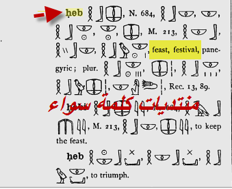 جميع المصادر أعلاه تقول : عيد أوبت / الحريم الجميل ( ترجى مراجعة المشاركات السابقة ) ...... heb = عيد / مهرجان / احتفال ![]() nefer = جميل ![]() ipet / opet = اسم معبد بالأقصر ، ويطلق عليه أيضا أسم ipet resyt ====> حريم الجنوب و بذلك يكون المعنى : عيد ipet الجميل ، أو عيد الحريم الجميل . ![]() opet = إسم معبد http://www.egyptologie.com/karnak.htm يُتبع بإذن الله ... المزيد من مواضيعي