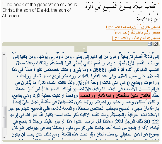 و هذا رابط ذو صلة عن نسب يوسف النجار و رغم أن يسوع ليس من صلبه إلا أن النصارى يصرون على أن يشنفوا آذاننا بقائمة الأسماء ليثبتوا أن زنى ثامار كان عملا إيمانيا !