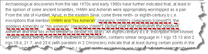 قلنا ونعيد : السيدة أشيرا المصُون ، كانت عبارة عن سارية من خشب أو تمثال من حجر ، العبرانيون كانو يضعونها داخل معبد يهوه وبجوار مذبحه بأمارة إيه يعني ؟؟؟ اليهود كانو يعبدون أشيرا كزوجة wife ليهوه ، التأكيد من نفس الموقع اليهودي : ![]() http://jwa.org/encyclopedia/article/...hasherim-bible