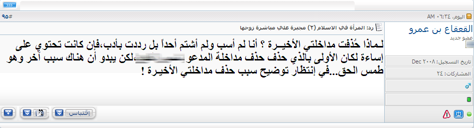 ![]() طبعاً هذه المداخلة الحارقة كان مصيرها المعتاد هو الحذف...فماذا حدث بعدها وبماذا إكتفى هذا الخروف ؟؟؟ هذا ما سنتعرف عليه في المداخلة القـادمة إن شاء الله . |