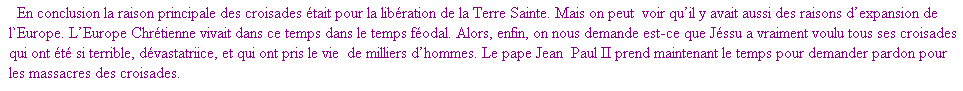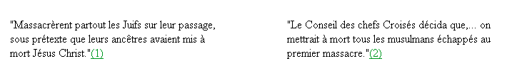![]() أرجو من الأخ الحبيب جادي الذي كفى ووفى في موضوعه الماتع أن يسمح لي بهذه الاضافة ، و هي أدلة اضافية من موقع نصراني يُلجمُ الضيف القبطي و يُقيم الحجة عليه : يقول الموقع النصراني الكندي في أسباب الحروب الصليبية الدموية : ![]() ترجمة : الحروب الصليبية كانت بين الهلال والصليب ، الكنيسة هي من قادت الحملات العسكرية لاستعادة الارض المقدسة ( القدس ) من أيدي الكفار المسلمين ،الذين كانوا لا يعتنقون نفس الديانة الفلاحون كانوا يسيرون نحو حتفهم و هم يرددون : ( الهنا يريد هذا ) ، هم كانوا يظنون أن يسوع أمرهم بذلك ،،، ![]() ترجمة : الاسباب الرئيسية للحروب الصليبية كانت تحرير الارض المقدسة ، ولكننا نرى أيضا أسبابا توسعية خاصة وان أوروبا النصرانية كانت تعيش تحت وطأة الحكم الفيودالي ، يسألوننا هل كان يسوع حقا يريد هذه الحروب الصليبية الدموية ، الكاسحة ، التي أزهقت أرواح الآلاف من الرجال ؟؟؟ البابا بولس الثاني ( بابا الفاتيكان السابق ) سيأخذ وقته الكامل ليطلب الصفح عن جرائم الحروب الصليبية الوحشية .... http://www.wqsb.qc.ca/symmes/Program..._croisades.htm جرائم وفظائع النصارى خلال الحروب الصليبية الدموية : ![]() 1 - الصليبيون كانوا يفتكون باليهود في كل مكان يمرون به بدعوى أن أجدادهم هم من قتلوا يسوع المسيح . 2 - مجلس حرب الحملة العسكرية للحروب الصليبية امر بقتل جميع المسلمين الذين نجوامن المذبحة الاولى . ![]() المُدافعون ( المسلمون ) هربوا في كل انحاء القدس ، رجالنا فتكوا بهم لدرجة ان مستوى الدماء كان يصل الى الكاحل ، الصليبيون اجتاحوا القدس برجالهم و اطفالهم و نسائهم و بغالهم و أحصنتهم ، قاموا بنهب بيوت الاغنياء http://www.basile-y.com/islam/isl2a.html صورة من وحشية الصليبيين : ![]() ![]() http://www.histoire-en-questions.fr/...jerusalem.html رابط ترجمة فرنسي / عربي حتى لا يتهمنا جُزافا ضيفنا القبطي باننا نُدلس في الترجمة ، http://translate.google.fr/#fr|ar| المزيد من مواضيعي