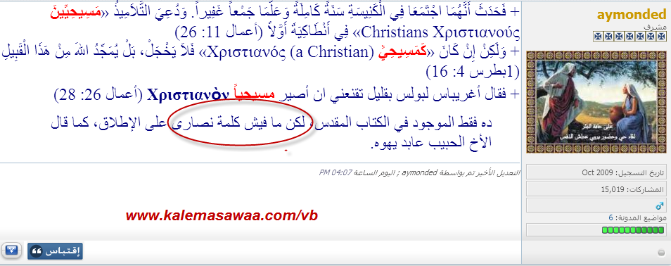 | أهلُ الكتابِ ... نصاري أم مسيحيون ام شئ آخر ! | العلاء | القسم النصراني العام | 8 | 11.02.2010 02:02 |