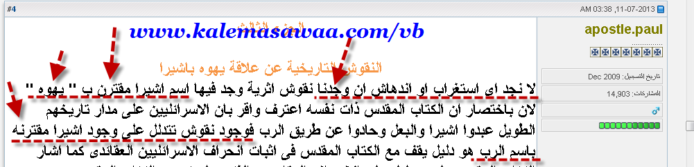 أكيد بتهزّر يادكتور ؟؟؟ مش دي اعترافاتك ؟؟؟؟ ![]() ![]() بعظمة لسانك بتعترف إن إسم يهوه مقترن بأشيرا ؟؟؟ ممكن تقول لينا بصفة إيييه ؟؟؟ ادينالك عشرات المصادراليهودية اللي بتقول : أشيرا هي زوجة يهوه وجنابك لسه بتنكر ....! ![]() صدقا العقول في راحه ....!