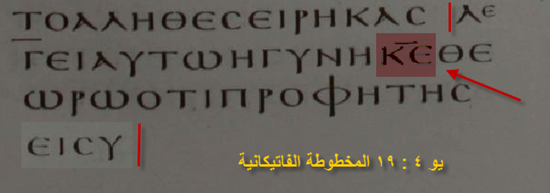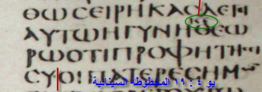 ![]() الآن إخوانى شاهدوا الجهل على أصوله ، النصرانى الذى يدعى العلم و المعرفة بلغات كتابه الأصلية و الذى سنرهقه بالعودة إلى لغات كتابه لا يعرف الكلمة التى يستشهد بها فى النص اليونانى ![]() الإدعاء بالشىء سهل ، لكن التدليل عليه صعب ... يمكنكم العودة إلى هذا الموقع فى الرابط التالى :- http://biblos.com/john/4-19.htm لتروا بأنفسكم أن الكلمة التى ظلل عليها النصرانى(προφήτης) تُعنى (prophet) (نبى) و ليس (سيد) كما يزعم النصرانى ... و نعتذر لكم على السير بهذه الطريقة كأننا فى الإبتدائية لأن النصرانى أثبت جهله بما يدعى علمه به فوجب الحوار معه بطرقة ( أ ، ب ، ....) . هذا هو النص فى المخطوطة السينائية :- المخطوطة الفاتيكانية :- المخطوطة السكندرية :- ![]() ![]() ![]() فكما نرى جميعاً هى نفسها الكلمة التى يُترجمونها إلى (رب) ترجموها هنا فى الفاندايك إلى (سيد) ، و عندما تُقال لغيره أيضاً يترجمونها إلى (سيد) رغم أنها جاءت مع غيره مُعرفة مُطلقة كما يُريد المصرانى ! فلم يا نصرانى ؟! لذا أُكرر :- هل يقول عاقل أن هذا النص يُعنى "يا الله أرى أنك نبى " ؟! المزيد من مواضيعي