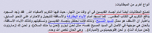 جزاكم الله خيرًا أخانا الفاضل صاعقة الإسلام رد ملجم أمثلة لاتخاذ النصارى واليهود قبور أنبيائهم وصالحيهم مساجد وأماكن للتعبد النصارى 1) قبر المسيح المزعوم بكنيسة القيامة بالقدس المصدر: http://www.christusrex.org/www1/jvc/TVCstatn14.html 2) قبر تكلا هيمانوت بكنيسته بالحبشة المصدر: st-takla.org ولا يخفى علينا السجود في هذه الكنائس المحتوية على القبور بهذه الطريقة Prostration المصدر: http://www.liturgy.co.nz/blog/tag/an...****-of-canada المزيد من مواضيعي