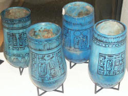 أواني مصنوعة من الطين الموقد عليه و هي تضم أحشاء رمسيس الثاني بعد تحنيطه :