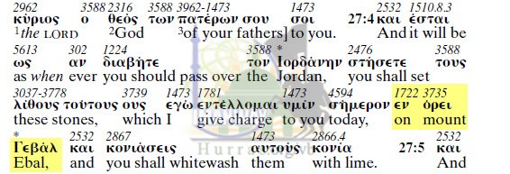 ἐν ὄρει γαιβαλ = בהר עיבל = على جبل عيبال (γαιβαλ = جايبال)