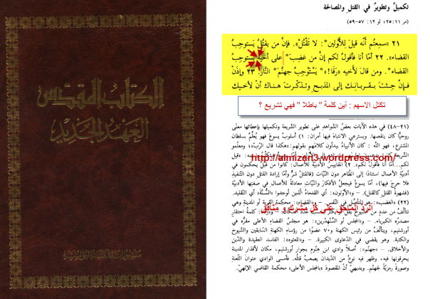 بسم الله الرحمن الرحيم الحمد لله وأفضل الصلاة وأتم التسليم على سيدنا محمد وعلى آله الطيبين وصحبه الغر المحجلين ومن والاهم واتبع هداهم إلى يوم الدين وبعد :ـ فهذه ردود ما زلت في إستمرار للدِّفاع عن العقيدة الاسلامية من ضلالات و كذب و تدليس المدعو ” الأخ رشيد ” ، وفي هذا المقال المتواضع سنعالج عنوان وضعه رشيد في الحقلة 7 من مفارقات بين الاسلام و المسيحية تحت ” السّب و الشّتيمة ” ، و كما عوّدنا رشيد في حَلقاتِه الكذب و البهتان و تحريفه لنصوص اسلامية و كذلك مسيحية. و على بركة الله نبدأ: قال رشيد : نقرأ في الحديث الصحيح المروي عن عائشة زوجة النبي (صلى الله عليه و سلم) ، قالت : دَخَلَ عَلَى رَسُولِ اللَّهِ صَلَّى اللَّهُ عَلَيْهِ وَسَلَّمَ رَجُلَانِ فَكَلَّمَاهُ بِشَيْءٍ لَا أَدْرِي مَا هُوَ فَأَغْضَبَاهُ فَلَعَنَهُمَا وَسَبَّهُمَا. أما السيد المسيح فقد نهى عن سب الناس و شتمهم و أظهر بأن ذلك يعدّ خطيئة فقال في إنجيله المقدس : وَأَمَّا أَنَا فَأَقُولُ لَكُمْ: إِنَّ كُلَّ مَنْ يَغْضَبُ عَلَى أَخِيهِ بَاطِلاً يَكُونُ مُسْتَوْجِبَ الْحُكْمِ، وَمَنْ قَالَ لأَخِيهِ: رَقَا، يَكُونُ مُسْتَوْجِبَ الْمَجْمَعِ، وَمَنْ قَالَ: يَا أَحْمَقُ، يَكُونُ مُسْتَوْجِبَ نَارِ جَهَنَّمَ. الرّد سيكون مقسم على أربع أجزاء : [1] : الرد على شبهة ” فَأَغْضَبَاهُ فَلَعَنَهُمَا وَسَبَّهُمَا “. [2] : تفنيد نص نهي المسيح عن سب الناس حسب الكتاب المقدس. [3] :هدية خاصة للمدعو ” الاخ رشيد “ ـــــــــــــــــــــ [1] : الرد على شبهة ” فَأَغْضَبَاهُ فَلَعَنَهُمَا وَسَبَّهُمَا “. بداية أشير إلى أن العلامة رشيد حرَّف النص و نقص منه حتى اصبح سقيما في الفهم بحيث الحديث كما جاء في صحيح مسلم (1) : عن عائشة قالت دخل على رسول الله صلى الله عليه وسلم رجلان فكلماه بشيء لا أدري ما هو فأغضباه فلعنهما وسبهما فلما خرجا قلت يا رسول الله من أصاب من الخير شيئا ما أصابه هذان قال وما ذاك قالت قلت لعنتهما وسببتهما قال أو ما علمت ما شارطت عليه ربي قلت اللهم إنما أنا بشر فأي المسلمين لعنته أو سببته فاجعله له زكاة وأجرا حدثناه و نحن نسأل رشيد لماذا إقتبست نصفاً و أخدت النصف الآخر ” فلما خرجا قلت يا رسول الله من أصاب من الخير شيئا ما أصابه هذان قال وما ذاك قالت قلت لعنتهما وسببتهما قال أو ما علمت ما شارطت عليه ربي قلت اللهم إنما أنا بشر فأي المسلمين لعنته أو سببته فاجعله له زكاة وأجرا حدثناه “؟ ، فسياق الحديث أن الرجلين أغضبا صلى الله عليه و سلم ، و بالتالي فاللوم لا يقع على النبي صلى الله عليه و سلم الذي بين في آخر الحديث أنه بشر و يغضب أيضا. بل اللوم يقع على الرجلين ، بحيث الغضب لا ينتقض أو ينقص أو يقدح في نبوته صلى الله عليه و سلم ، ففي هذا الحديث موقف ناذر تبث عن النبي صلى الله عليه و سلم ، و قد جاء في شرح الامام النووي رحمه الله لهذه الرواية : هذه الأحاديث مبينة ما كان عليه صلى الله عليه وسلم من الشفقة على أمته ، والاعتناء بمصالحهم ، والاحتياط لهم ، والرغبة في كل ما ينفعهم . وهذه الرواية المذكورة آخرا تبين المراد بباقي الروايات المطلقة ، وأنه إنما يكون دعاؤه عليه رحمة وكفارة وزكاة ونحو ذلك إذا لم يكن أهلا للدعاء عليه والسب واللعن ونحوه ، وكان مسلما ، وإلا فقد دعا صلى الله عليه وسلم على الكفار والمنافقين ، ولم يكن ذلك لهم رحمة . فإن قيل : كيف يدعو على من ليس هو بأهل الدعاء عليه أو يسبه أو يلعنه ونحو ذلك ؟ فالجواب ما أجاب به العلماء ، ومختصره وجهان : أحدهما أن المراد ليس بأهل لذلك عند الله تعالى ، وفي باطن الأمر ، ولكنه في الظاهر مستوجب له ، فيظهر له صلى الله عليه وسلم استحقاقه لذلك بأمارة شرعية ، ويكون في باطن الأمر ليس أهلا لذلك ، وهو صلى الله عليه وسلم مأمور بالحكم بالظاهر ، والله يتولى السرائر . والثاني أن ما وقع من سبه ودعائه ونحوه ليس بمقصود ، بل هو مما جرت به عادة العرب في وصل كلامها بلا نية ، كقوله : تربت يمينك ، وعقرى حلقى وفي هذا الحديث (