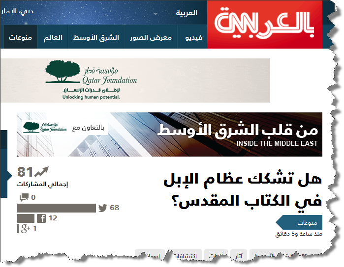 ![]() اللهم صل على محمد وعلى آله وصحبه أجمعين ،، نقرأ في مقال لموقع cnn عربي : ![]() المقال كاملا حتى لا يتّهمنا أحدهم جُزافا بالإقتطاع أو التّدليس : دبي، الإمارات العربية المتحدة (CNN) -- اعتبرت الجمال في العهد القديم، أداة نقل مفيدة للغاية. وفي المقام الأول، فإنها كانت تمثل ثروة كبيرة، إذ لدى ذهاب النبي ابراهيم في رحلة إلى مصر، فإن الفرعون قدم إليه مكافأة ضخمة، تتضمن الأغنام والخدم والصفوة من الجمال، في مقابل زوجة إبراهيم، سارة (رغم أنّ الفرعون كان يعتقد أنهما أشقاء). ورغم أن هذه الحيوانات أدت دوراً محوريا في سفر التكوين، إلا أن هناك أدلة جديدة تطرح أسئلة حول قضية وجودها في إسرائيل خلال حياة النبي إبراهيم وأحفاده (والتي يعتقد أنها بين العامين 1500 و2000 قبل الميلاد)، فضلاً عن كتابة الكتاب المقدس. أما الأستاذان إيرز بن يوسف ويدار سابير - هن، وهما عالما آثار في جامعة تل أبيب في إسرائيل، فنشرا مؤخرا دراسة بعدما كشف فحص الكربون المشع عن تاريخ عظام الجمال خلال عملية التنقيب في وادي عرفة، أي المنطقة على الحدود بين إسرائيل وشبه الجزيرة العربية. أما عملية التنقيب فكشفت عن عظام الإبل والتي وجدت حتى الآن في إسرائيل، وهذه يعود تاريخها إلى الفترة التي لا تقل عن العام 940 قبل الميلاد أي على الأقل 500 عام بعد الوقت الذي تم ذكرها في الكتاب المقدس. وقال بن يوسف إن "هذا مثال جيد على أن القصص كانت مكتوبة في مرحلة لاحقة، مقارنة بالوقت التي كان يفترض أنها وقعت فيه. أما كاتب هذه القصص، فكان يعرف أن الجمال كانت أداة تستخدم في ذلك الوقت للسفر عبر الصحراء. لذا، فبالطبع استخدم ابراهيم، ويعقوب وداوود، الإبل. ونحن نسميها مفارقة تاريخية، إذ سلط الكاتب الضوء على الحقيقة التي كان يعرفها في عصره." وأشار بن يوسف إلى أنه رغم أن القصص قد تكون كتبت في وقت لاحق، إلا أن استنتاجاته لا تلقي بالضرورة الشك على الحكايات ذاتها. وأضاف بن يوسف أن "هذا لا يعني بالضرورة أن القصص خيالية أو أنه ليس هناك ذرة من الحقيقة فيها. إنما فقط يعني أن الشخص الذي كتب هذه القصص قد قدم الخلفية وفقا لحقائقه. ولم يكن هناك علماء الآثار في ذلك الوقت حتى يقولوا إن الإبل لم تكن موجودة." أما النتائج فليست جديدة تماما إذ تم التشكيك من قبل علماء الآثار في فكرة ركوب إبراهيم للجمل في ذهابه إلى مصر منذ خمسينيات القرن الماضي. ولكن وفقا لبن يوسف، فإن فحص الكربون المشع لمعرفة تاريخ العظام يضيق من هذا الاحتمال. وبطبيعة الحال، لا يتفق الجميع على استنتاجات الدراسة. وقال أستاذ اللغة العبرية واللغات السامية في جامعة "ليفربول" آلان ميلارد، إنه في حين لا يشكك في نتائج فحص الكربون المشع لعظام الجمال، لكنه لا يعتقد في الوقت ذاته، أن ذلك يدحض أن الإبل كانت موجودة في عهد كتابة الكتاب المقدس. وأضاف ميلارد أن "علماء الآثار كانوا يعملون في واد جنوب البحر الأحمر، ولكن القصص تصور إبراهيم في جنوب العراق في أور وجنوب تركيا في منطقة حران قبل مجيئه إلى كنعان. أما الحقيقة فهي أنه إذا لم تكن عظام الإبل موجودة قبل ألف عام قبل الميلاد في جنوب البلاد، فلا يعني ذلك عدم وجود الإبل في أي مكان آخر". وأشار ميلارد إلى أنه "رغم من ندرة الأدلة، إلا أن هناك أدلة على أن الإبل استخدمت محليا خلال تلك الفترة، بما في ذلك ما يظهره الختم البابلي بين العامين 1700 و1800 قبل الميلاد، والذي يصور اثنين من الآلهة يجلسان على الإبل ". ورغم الجدل حول الكتاب المقدس الذي فتحته الدراسة، فإن بن يوسف وسابير-هن قالا إن التركيز الأساسي في البحث كان ليس للتشكيك في سفر التكوين، ولكن لإلقاء بعض الضوء على الحركة الاقتصادية في ذلك الوقت . بدوره، أوضح سابين هن أن "الجمال ساعدت في الرحلات الطويلة في بلاد الشام، وعلى طول الطريق إلى الهند. واعتبرت تمثيلاً للتغير الاجتماعي والاقتصادي العميق." المصدر : cnn عربي ======= يُتبع ... للمزيد من مواضيعي
