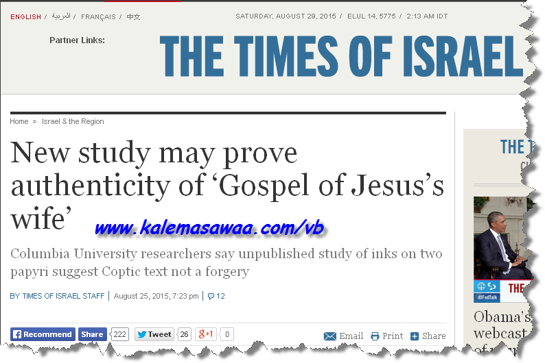 Gospel of Jesus’s wife authenticated