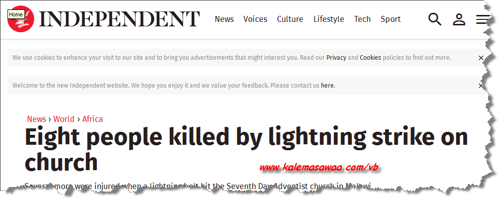 الردّ على هذا الدجّال و بإيجاز غير مخلّ : نعم الموت أمر و قضاء من الله عزّ وجل ! نعم البيت بيت الله ! نعم الضيوف ضيوف الرحمن ! لكن ...... أين ذكر قرآن ربّ العزّة أو السنة النبوية الشريفة أنّ من يزور المشاعر المقدّسة سيكون في منآى عن الموت أو سيعيش أبد الدّهر خالداً مخلّداًً ؟؟؟؟ أتحدّاك أن تجيب أنت أو أحد بني جلدتك ! ![]() أشكّ - يامن تزعم أنك من خلفية إسلامية - أنك قرأت يوما قوله تعالى : أَيْنَمَا تَكُونُوا يُدْرِككُّمُ الْمَوْتُ وَلَوْ كُنتُمْ فِي بُرُوجٍ مُّشَيَّدَةٍ النساء : 78 وقوله تعالى : وَلَن يُؤَخِّرَ اللَّهُ نَفْسًا إِذَا جَاءَ أَجَلُهَا وَاللَّهُ خَبِيرٌ بِمَا تَعْمَلُونَ المنافقون : 11 كُلُّ نَفْسٍ ذَائِقَةُ الْمَوْتِ وَإِنَّمَا تُوَفَّوْنَ أُجُورَكُمْ يَوْمَ الْقِيَامَةِ فَمَن زُحْزِحَ عَنِ النَّارِ وَأُدْخِلَ الْجَنَّةَ فَقَدْ فَازَ وَمَا الْحَيَاةُ الدُّنْيَا إِلَّا مَتَاعُ الْغُرُورِ آل عمران : 185 كُلُّ نَفْسٍ ذَائِقَةُ الْمَوْتِ وَنَبْلُوكُم بِالشَّرِّ وَالْخَيْرِ فِتْنَةً وَإِلَيْنَا تُرْجَعُونَ الأنبياء : 35 كُلُّ نَفْسٍ ذَائِقَةُ الْمَوْتِ ثُمَّ إِلَيْنَا تُرْجَعُونَ العنكبوت : 57 -------- ما تعامى عنه المنصّر هو حقيقة كون المرء يمكن أن توافيه المنية بعد مرض عُضال أو بسبب حادثة من الحوادث . بل ويمكن أن يتخطّفه الموت وهو سليم مُعافى و جالس في بيته بين أبنائه و أحبته ! خلاصة القول ، تعدّدت الأسباب و المآل المحتوم واحد ---> الموت الذي هو حقّ على جميع خلائق الأرض ! يقول الحق في سورة الرحمن : كُلُّمَنْ عَلَيْهَافَانٍ(26) وَيَبْقَىٰ وَجْهُ رَبِّكَ ذُو الْجَلَالِ وَالْإِكْرَامِ (27) الآن جاء لدورنا فنسأل ،، كيف لربّ تزعمون أنه عطوف ، رؤوف ، رحيم ، مُحبّ أن يسمح بترويع و موت أبنائه ''المطمئنين'' و داخل كنيسة المفروض أنها ''آمنة'' يتغشاها الروح القـُدُس و يظللها برعايته و حمايته ؟؟؟ فهل سنسمع يا تُرى جواباً ؟؟؟ ![]() للإستئناس : 1- كنيسة تنهار على أتباع يسوع الآمنين المطمئنين : 2- صاعقة تضرب كنيسة : 3- صاعقة تضرب كنيسة متسببة في مقتل 8 أشخاص : ![]() المصدر : صحيفة الإندبندنت 4- - صاعقة تضرب كنيسة متسببة في مقتل 8 أشخاص بينهم طفل : ![]() المصدر : صحيفة الديلي ميل ![]() بنفس منطق المنصّر السقيم العليل ، الريح تجري بأمر من "يهوه/ يسوع" و الرعد البرق كذلك ، السؤال :كيف سمح الربّ المزعوم أن تقصف الصواعقُ الكنائسَ بل و تتسبب أحيانا في موت مسيحيين و أطفال لا ذنب لهم ، و لا حول لهم ولا قوة ؟؟؟ ![]() ![]() ![]() ![]() دمتم سالمين . للمزيد من مواضيعي