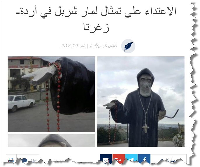 ![]() اللهم صل على محمد وعلى آله وصحبه أجمعين ،،، ملاحظة: تنويه وتنبيه : حتى لا يذهبنّ فكرك بعيد يا نصراني ، الموضوع هو دعوة لإعمال العقل والتفكّر بهدوء و حكمة ورويّة ! نقرأ في خبر على موقع أليتيا - عربي الكاثوليكي : ![]() لبنان/ أليتيا (aleteia.org/ar) في البلدة الشمالية التي لطالما عرفت هدوءًا حدث ما لم يكن متوقعًا حيث أقدم مجهولون على الاعتداء على تمثال للقديس شربل من أمام كنيسة القديسة ريتا التي افتتحت حديثًا في بلدة أردة التابعة لقضاء زعرتا. خادم رعية كنيسة القديس سمعان في البلدة عينها الأب سايد مرّون أكد وقوع الاعتداء على التمثال الذي يتبرك منه ابناء البلدة. هذا وقد دعا الأب سايد عبر صفحة الرعبة على الفيسبوك الجميع الى ضبط النفس فيما يتم التحقيق بالحادثة. اليكم ما قاله كاهن الرعية: ![]() كما صار معلوماً، يوجد إعتداء على تمثال مار شربل أمام حديقة كنيسة القديسة ريتا بأرده. حدث ذلك في الليل. نحن بتواصل مع المسؤولين الامنين لمشاهدة فيلم الكاميرا الموجود عند جيران الكنيسة. سألتقي بدورية أمنية بعد دقائق. سأوافيكم بكل تفصيل. أتمنى أن نتعامل مع الموضوع بحكمة و بهدوء وبروح واعية وبدون دعوات إلى العنف و بدون شتائم. يا مار شربل صلي لاجلنا. المصدر : aleteia.org/ar يُتبع >>> للمزيد من مواضيعي