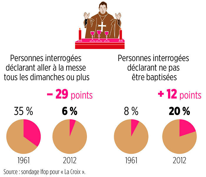 20 بالمئة لم ينالوا التعميد سنة 2012 مقابل 8 بالمئة سنة 1961