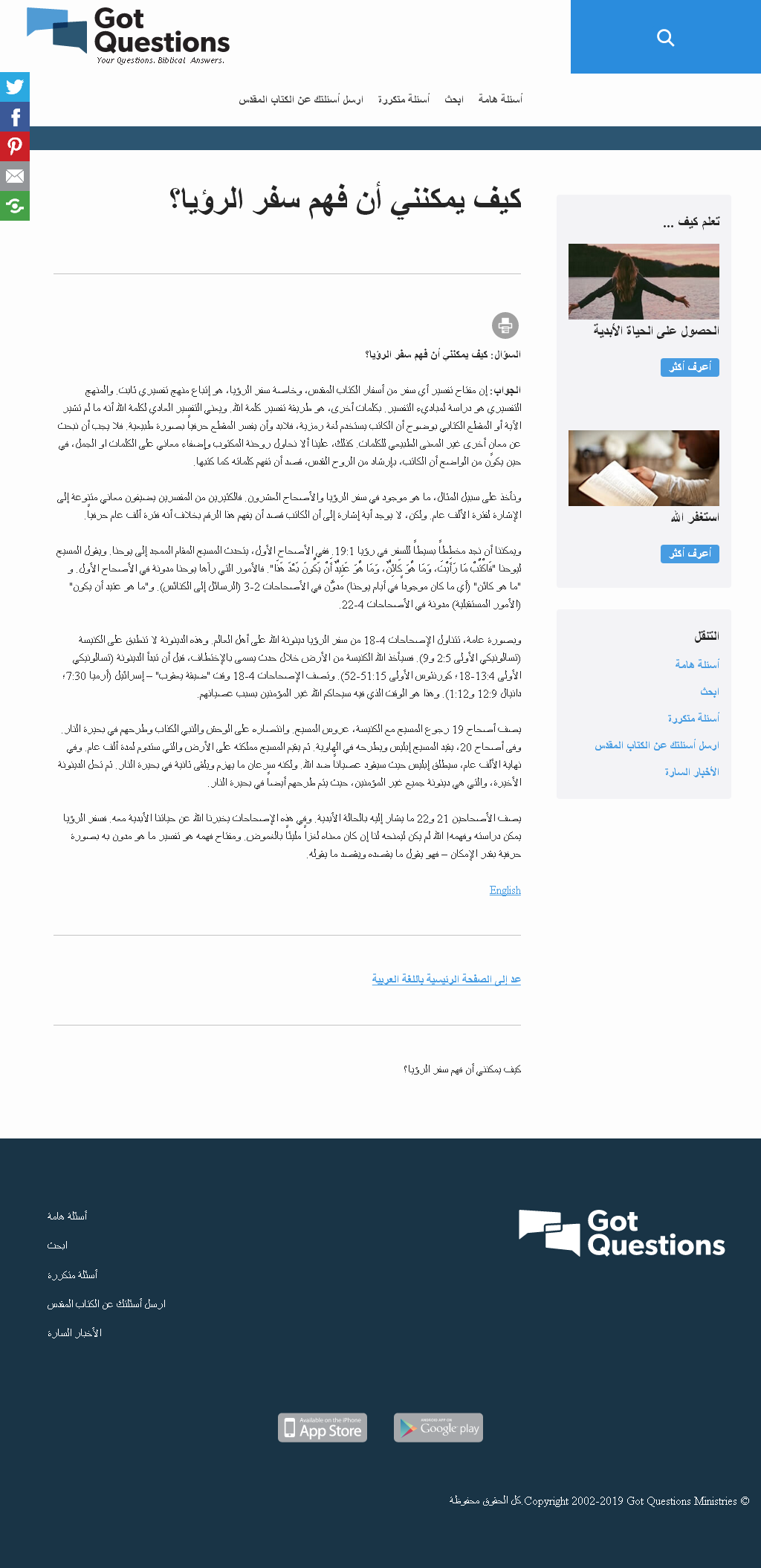 ![]() اللهم صل على محمد وعلى آله وصحبه أجمعين ،، ![]() السؤال: كيف يمكنني أن فهم سفر الرؤيا؟ الجواب: إن مفتاح تفسير أي سفر من أسفار الكتاب المقدس، وخاصة سفر الرؤيا، هو إتباع منهج تفسيري ثابت. والمنهج التفسيري هو دراسة لمباديء التفسير. بكلمات أخرى، هو طريقة تفسير كلمة الله. ويعني التفسير العادي لكلمة الله أنه ما لم تشير الآية أو المقطع الكتابي بوضوح أن الكاتب يستخدم لغة رمزية، فلابد وأن يفسر المقطع حرفياً بصورة طبيعية. فلا يجب أن نبحث عن معانٍ أخرى غير المعنى الطبيعي للكلمات. كذلك، علينا ألا نحاول روحنة المكتوب وإضفاء معاني على الكلمات او الجمل، في حين يكون من الواضح أن الكاتب، بإرشاد من الروح القدس، قصد أن تفهم كلماته كما كتبها. ![]() ![]() ![]() ونأخذ على سبيل المثال، ما هو موجود في سفر الرؤيا والأصحاح العشرون. فالكثيرين من المفسرين يضيفون معاني متنوعة إلى الإشارة لفترة الألف عام. ولكن، لا يوجد أية إشارة إلى أن الكاتب قصد أن يفهم هذا الرقم بخلاف أنه فترة ألف عام حرفياً. ويمكننا أن نجد مخططاً بسيطاً للسفر في رؤيا 19:1. ففي الأصحاح الأول، يتحدث المسيح المقام الممجد إلى يوحنا. ويقول المسيح ليوحنا "فَاكْتُبْ مَا رَأَيْتَ، وَمَا هُوَ كَائِنٌ، وَمَا هُوَ عَتِيدٌ أَنْ يَكُونَ بَعْدَ هَذَا". فالأمور التي رآها يوحنا مدونة في الأصحاح الأول. و "ما هو كائن" (أي ما كان موجوداً في أيام يوحنا) مدوَّن في الأصحاحات 2-3 (الرسائل إلى الكنائس). و"ما هو عتيد أن يكون" (الأمور المستقبلية) مدونة في الأصحاحات 4-22. وبصورة عامة، تتناول الإصحاحات 4-18 من سفر الرؤيا دينونة الله على أهل العالم. وهذه الدينونة لا تنطبق على الكنيسة (تسالونيكي الأولى 2:5 و9). فسيأخذ الله الكنيسة من الأرض خلال حدث يسمى بالإختطاف، قبل أن تبدأ الدينونة (تسالونيكي الأولى 13:4-18؛ كورنثوس الأولى 51:15-52). وتصف الإصحاحات 4-18 وقت "ضيقة يعقوب" – إسرائيل (أرميا 7:30؛ دانيال 12:9 و1:12). وهذا هو الوقت الذي فيه سيحاكم الله غير المؤمنين بسبب عصيانهم. يصف أصحاح 19 رجوع المسيح مع الكنيسة، عروس المسيح. وانتصاره على الوحش والنبي الكذاب وطرحهم في بحيرة النار. وفى أصحاح 20، يقيد المسيح إبليس ويطرحه في الهاوية. ثم يقيم المسيح مملكته على الأرض والتي ستدوم لمدة ألف عام. وفي نهاية الألف عام، سيطلق إبليس حيث سيقود عصياناً ضد الله. ولكنه سرعان ما يهزم ويلقى ثانية في بحيرة النار. ثم تحل الدينونة الأخيرة، والتي هي دينونة جميع غير المؤمنين، حيث يتم طرحهم أيضاً في بحيرة النار. يصف الأصحاحين 21 و22 ما يشار إليه بالحالة الأبدية. وفي هذه الإصحاحات يخبرنا الله عن حياتنا الأبدية معه. فسفر الرؤيا يمكن دراسته وفهمه! الله لم يكن ليمنحه لنا إن كان معناه لغزاً مليئاً بالغموض. ومفتاح فهمه هو تفسير ما هو مدون به بصورة حرفية بقدر الإمكان – فهو يقول ما يقصده ويقصد ما يقوله. ![]() المصدر المسيحي المعتمد من هُنا للمزيد من مواضيعي
